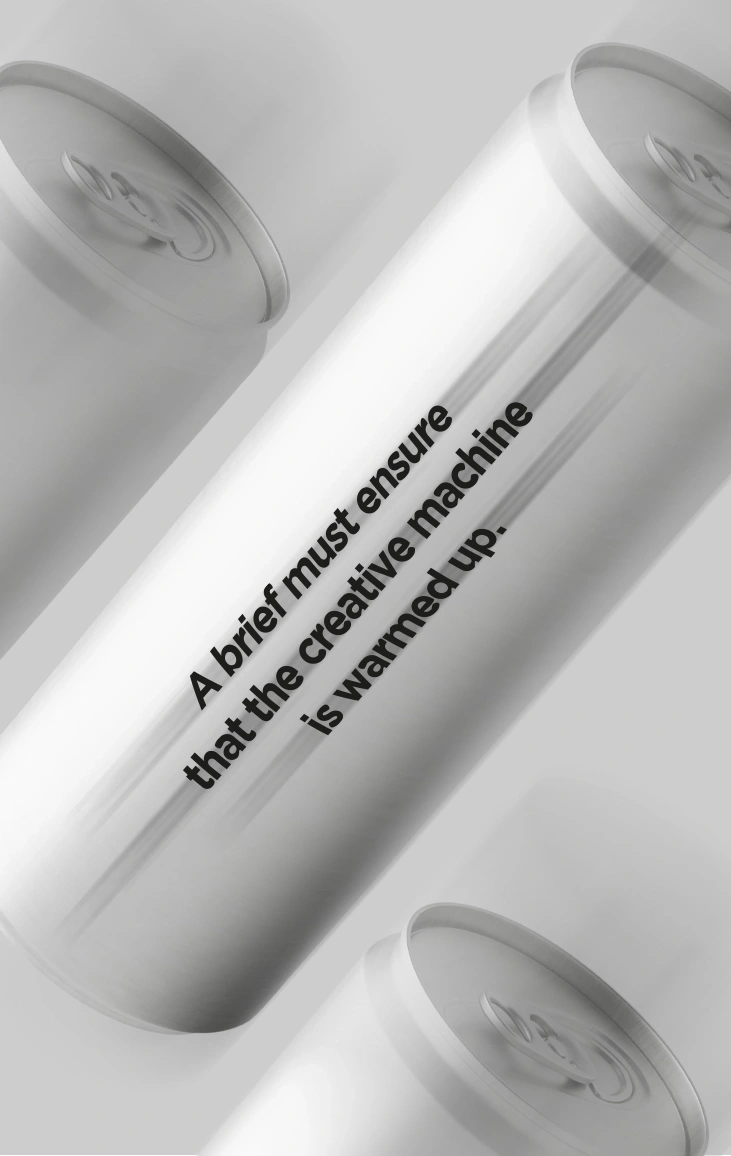 A brief has to capture the imagination. Motivate. It has to reflect the essence (without going into too much detail). A brief must ensure that the creative machine is warmed up.